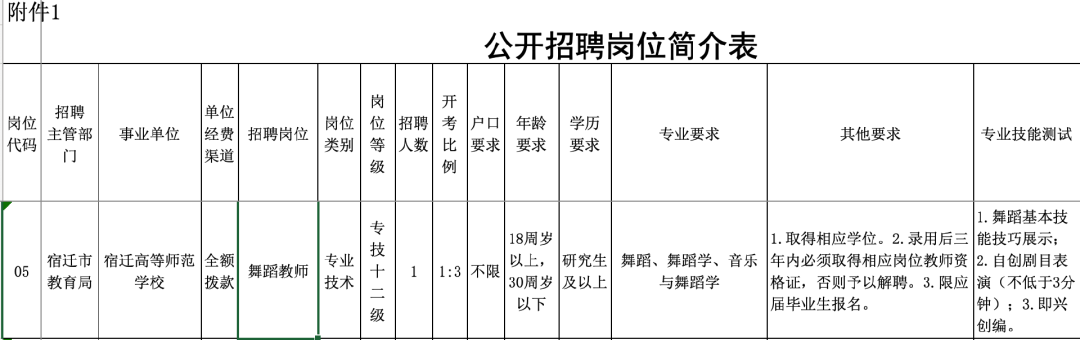 舞蹈教师(1人)