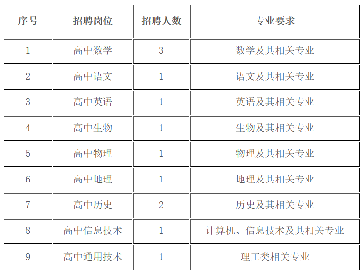(4)应聘教师应具有相应学科教师资格证,其中应聘高中通用技术岗位的教师资格学科可放宽至理科类。