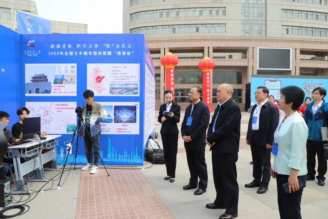 5月11日,由人力资源和社会保障部发起,山东省人力资源和社会保障厅、菏泽市人民政府主办,菏泽市人力资源和社会保障局、菏泽学院承办的“职引未来—2023年全国大中城市巡回招聘‘菏泽站’活动”启动仪式暨大型招聘会在我校举行。山东省各地市公共就业和人才服务机构负责人,山东省各市重点民营企业、部分人力资源服务、教育、卫生机构等招聘负责人,我校、齐鲁工大(菏泽校区)、菏泽医专、菏泽职业学院等驻菏大中专院校毕业生,省内各市有就业创业意愿的应往届高校毕业生参加活动。