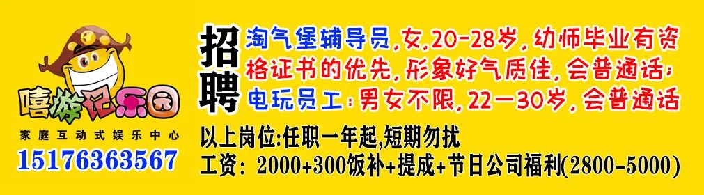 1.淘气堡辅导员(女性)若干名