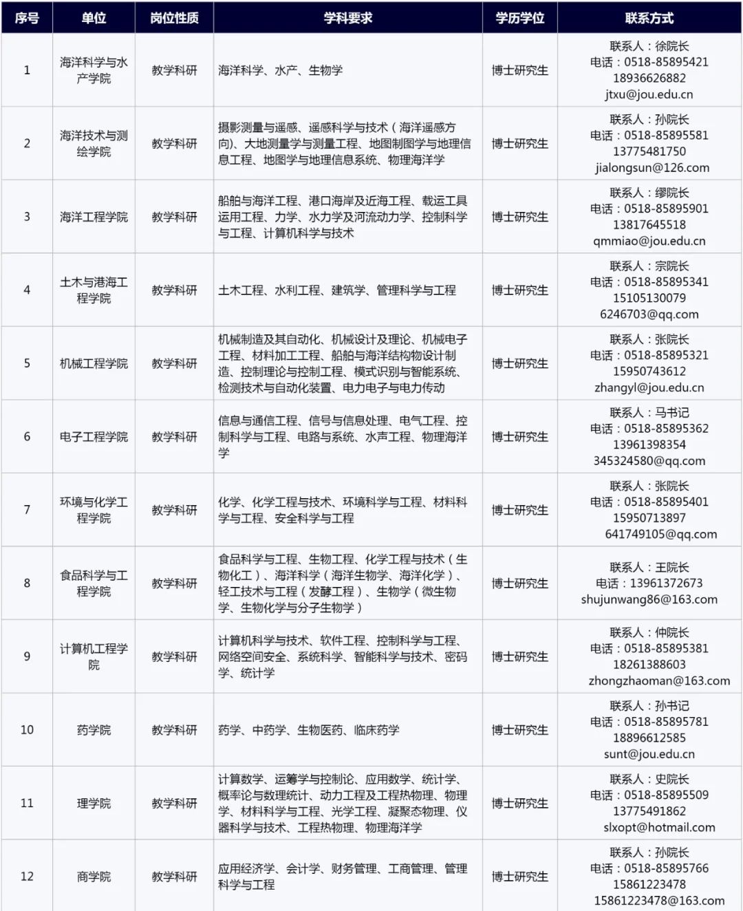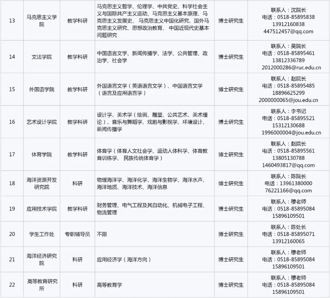 通讯地址:江苏省连云港市海州区苍梧路59号江苏海洋大学人事处