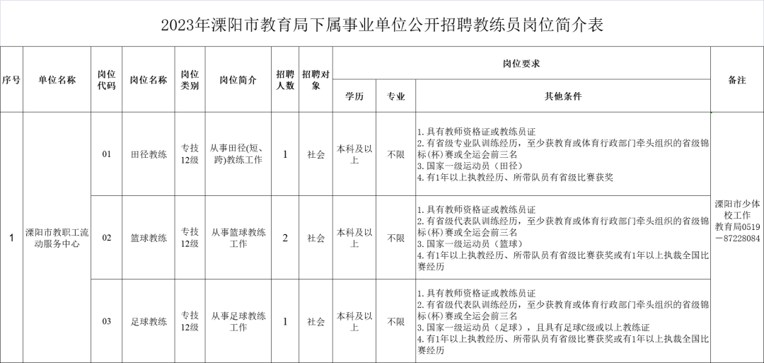 报考人员可通过常州市人力资源和社会保障局网(http://rsj.changzhou.gov.cn)、溧阳市人民政府部门网站(www.liyang.gov.cn)-公开招聘栏、溧阳教育公共服务平台(http://www.lyjyfw.net/)等查询招聘岗位及具体岗位条件等信息。