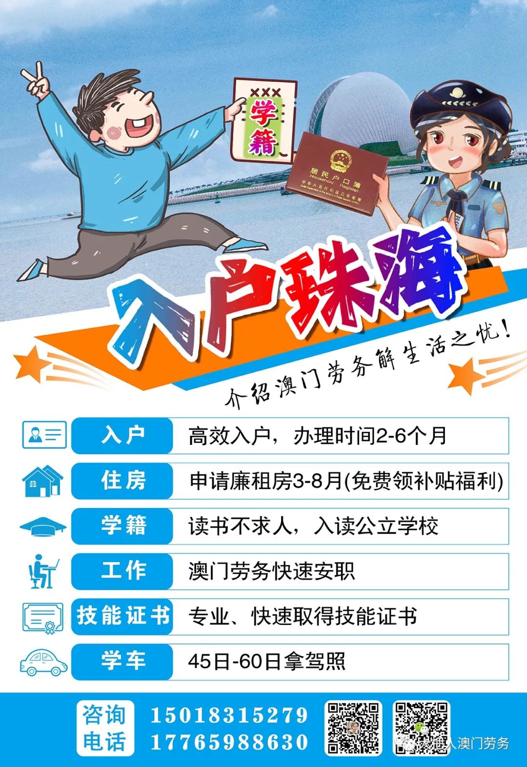 薪金待遇:mop8600-8900+包住不包吃;上班10个钟的,月休3天;跟足澳门劳工法。(不要东北三省、福建、河南,对蓝卡)