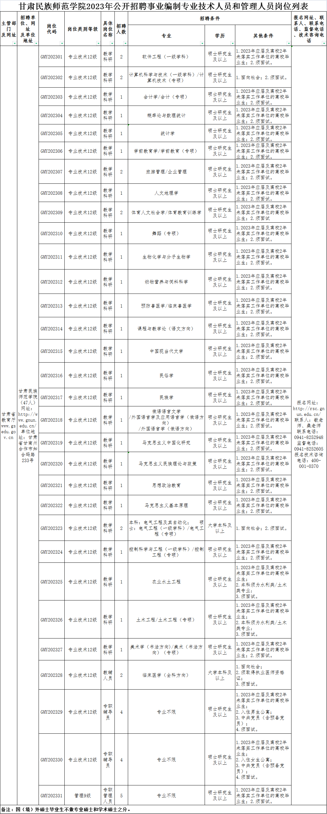 附件【附件1:甘肃民族师范学院2023年公开招聘专业技术人员和管理人员岗位列表.xls】
