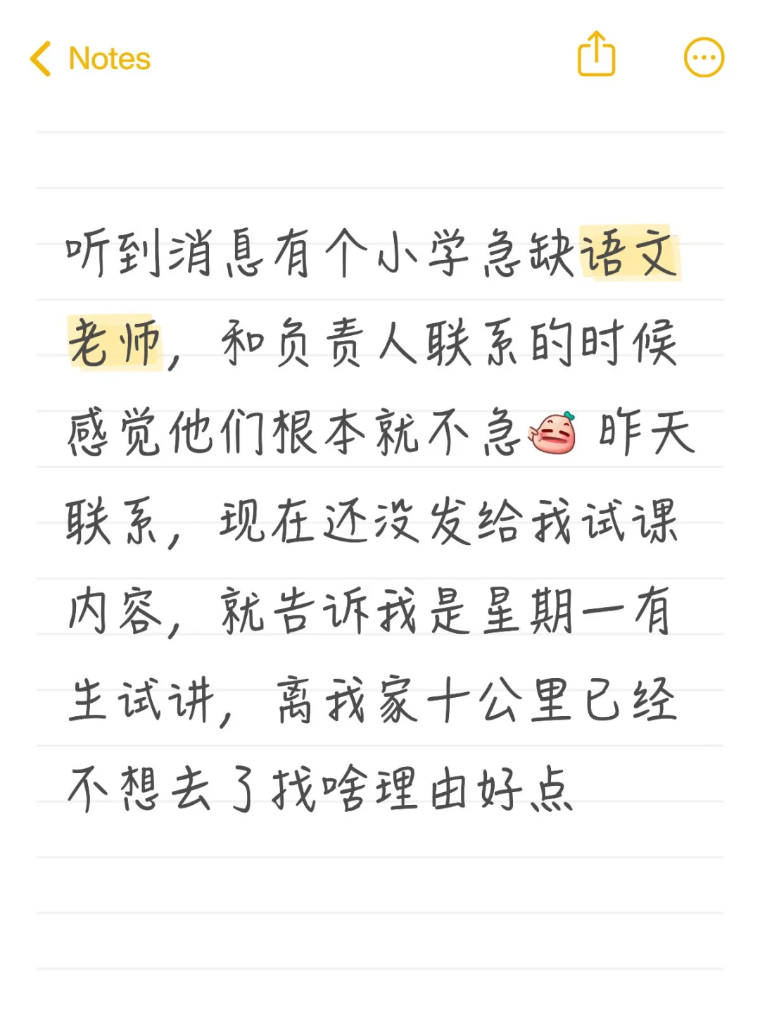昨天晚上听到消息说有个小学急缺语文老师,和负责人联系的时候还问我是不是通过人才招聘来的,加了联系要了我的简历以后就没消息了,感觉他们根本就不急也不缺替补老师