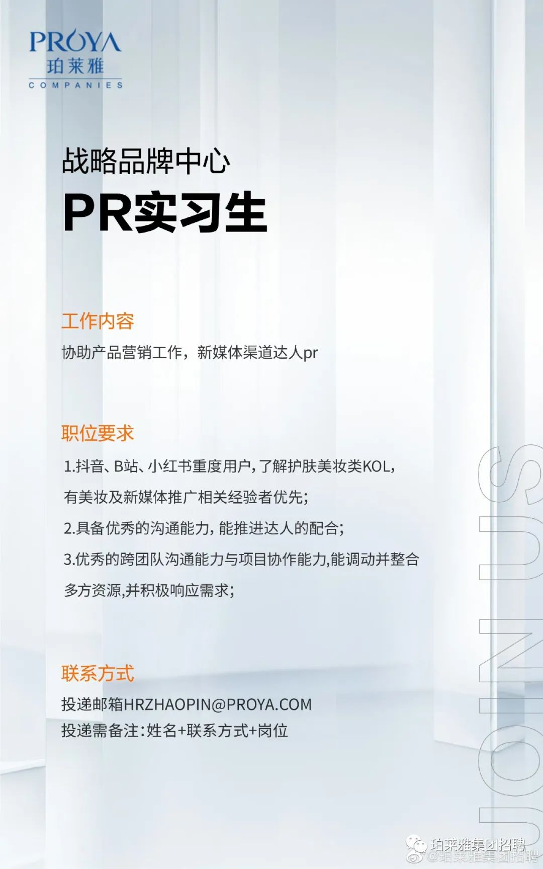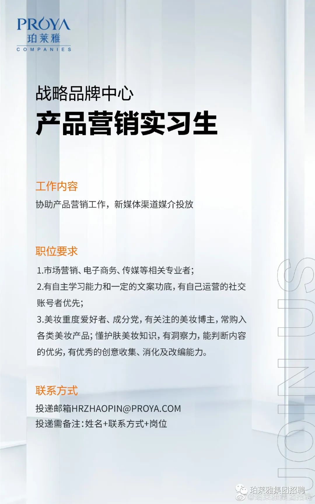 工作地点:杭州市西湖区西溪路588号(珀莱雅大厦)