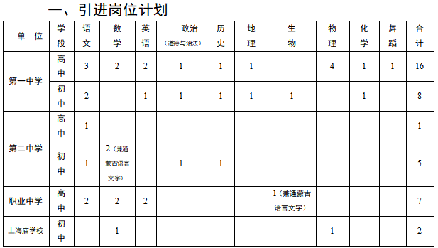 (2)具有三年以上中学一线教学工作经历,获得旗(县)级以上“学科带头人”、“教学能手”等荣誉称号的在同等条件下优先考虑,同时,经引进工作领导小组考察特别优秀的,年龄可适当放宽。
