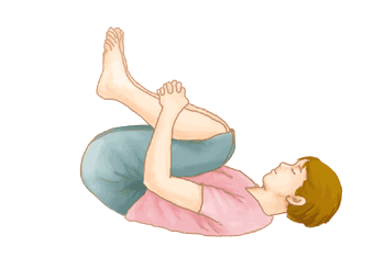 躺在地上,两脚屈膝,两手环抱住小腿,抬头收腹拱背,身体往后从尾椎、腰椎、胸椎一节一节碰触地面,如此前后滚过来滚过去。