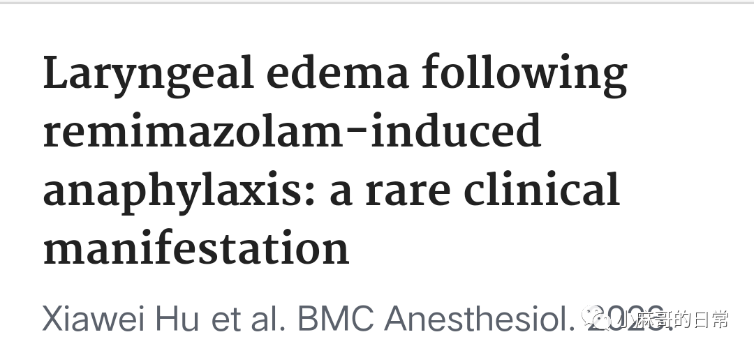 与其他报道的病例不同,喉水肿是瑞马唑仑过敏反应的最初和主要临床特征。