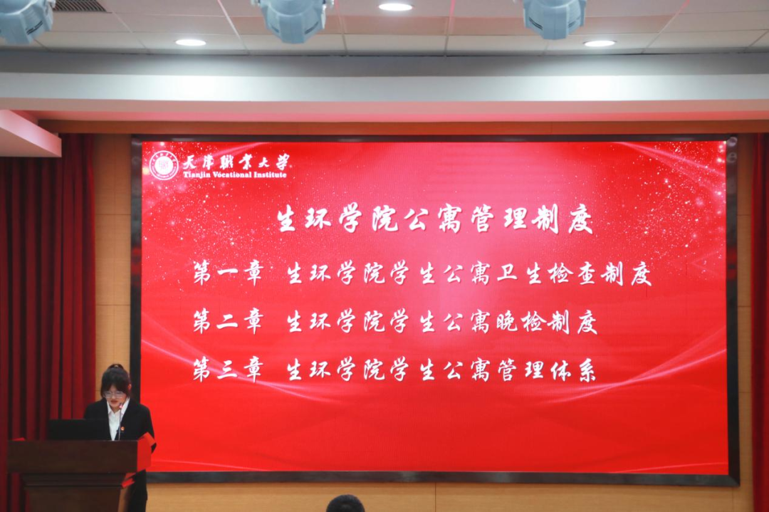 会议伊始,院学生会主席、生活部负责人张欣悦宣读了生物与环境工程学院学生公寓管理制度,并介绍了公寓学生干部的选拔标准和岗位职责。田阳老师充分肯定了过去一年来大家的辛勤付出,她强调宿舍安全至关重要,公寓干部们要以身作则,认真履行各自的岗位职责,帮助同学们解决生活中遇到的实际困难,为大家营造安全、舒适的住宿环境。
