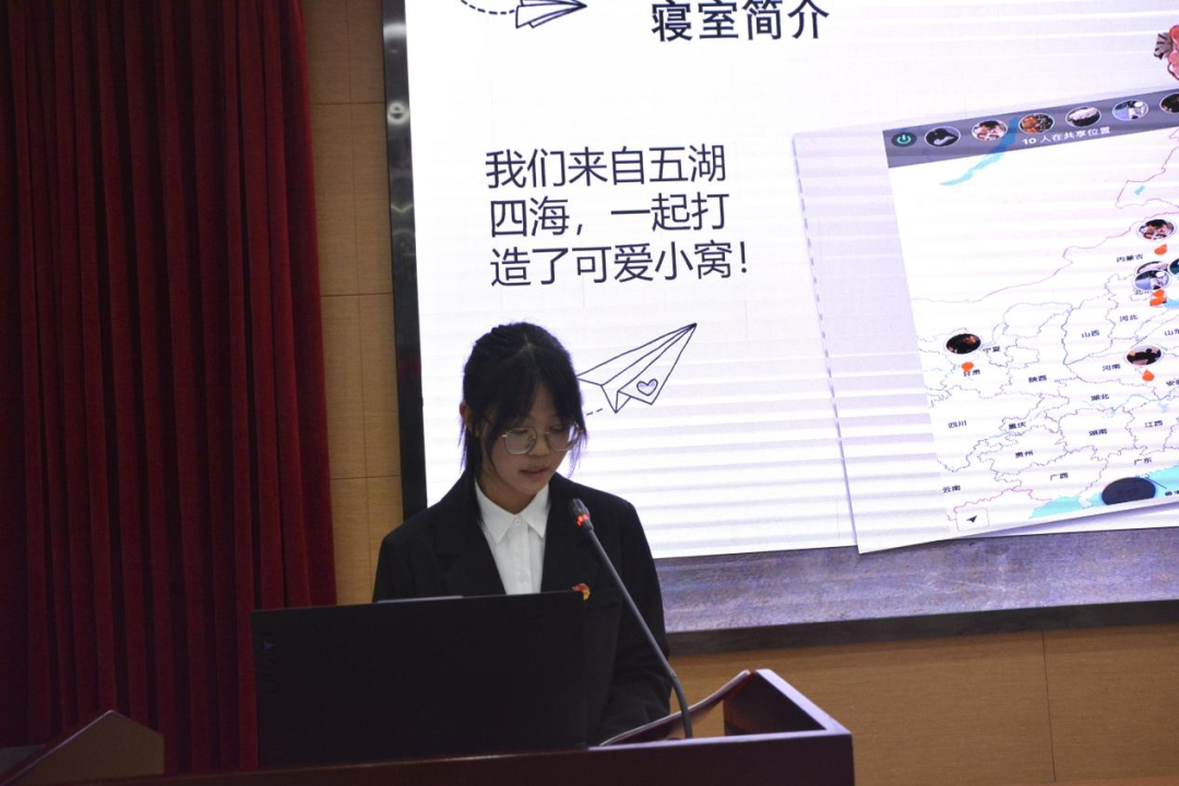 会上,还对学院优秀宿舍和最美寝室长进行了表彰,张欣蕊和李萌冉作为代表纷纷做了风采展示,呼吁同学们行动起来,要向身边的优秀宿舍和最美寝室长学习,为建设安全、文明、和谐的公寓环境而共同努力。歌曲《如愿》、《成都》,将大会引入高潮。