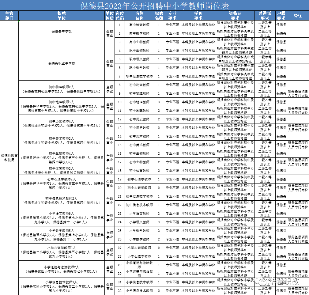 7. 保德县户籍。公告发布日之前为保德县户籍的;因上学原因迁出而未迁回保德县户籍的;服务保德县基层项目人员的;公告发布日之前结婚登记的夫妻,配偶一方为保德县户籍的,另一方视为保德县户籍。