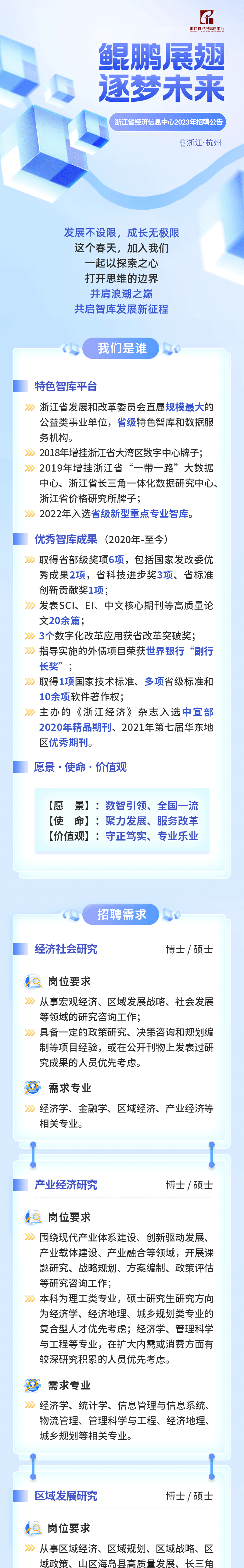 【网申地址】 http://campus.51job.com/crcchd/post.html 2、【杭州】浙江省经济信息中心 【公司简介】