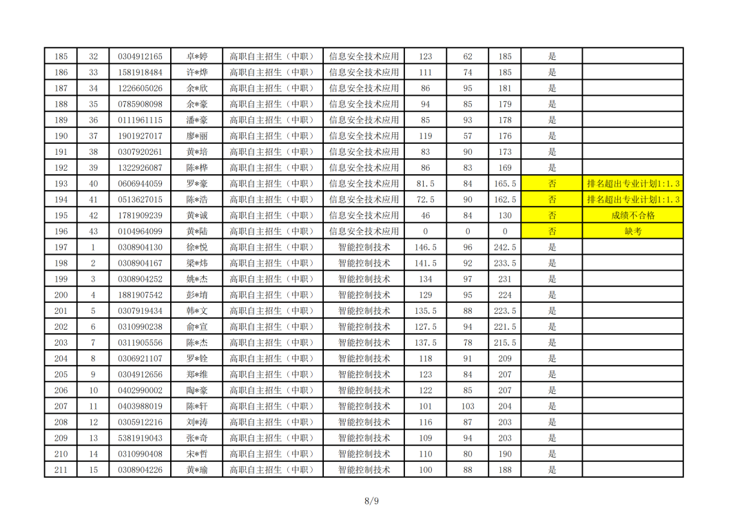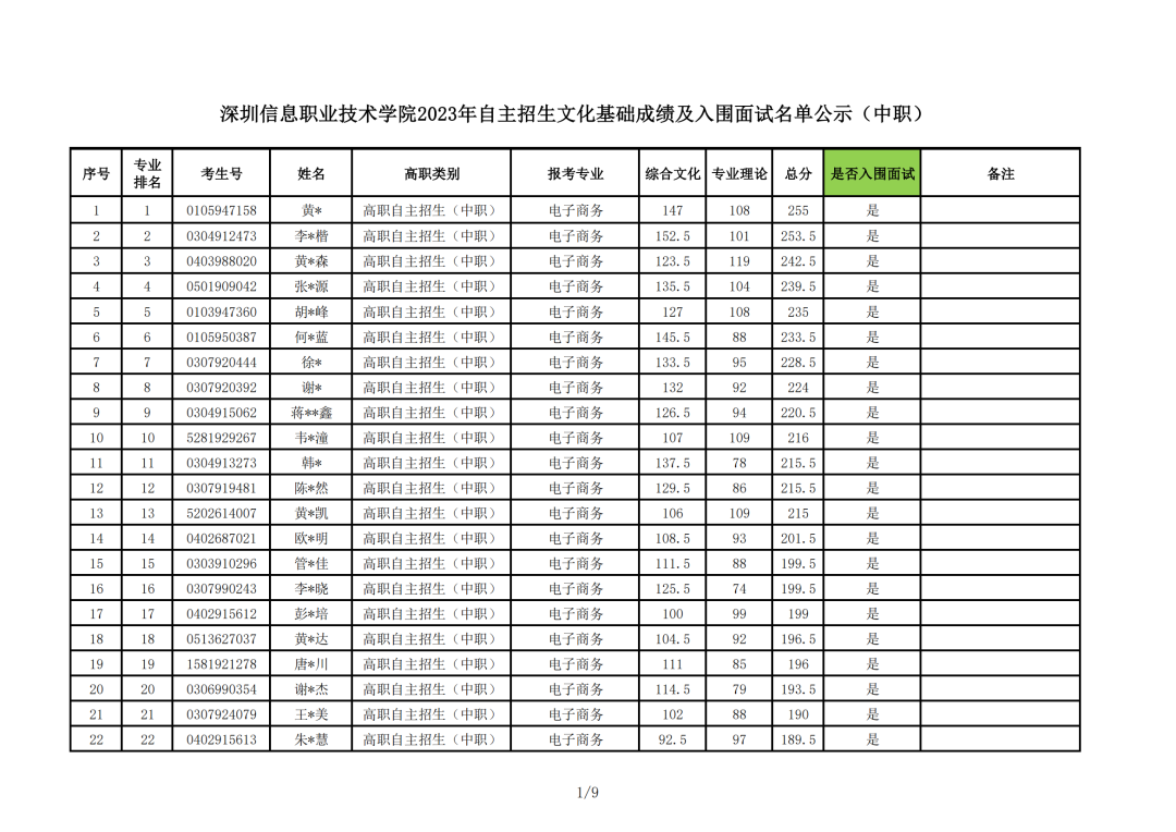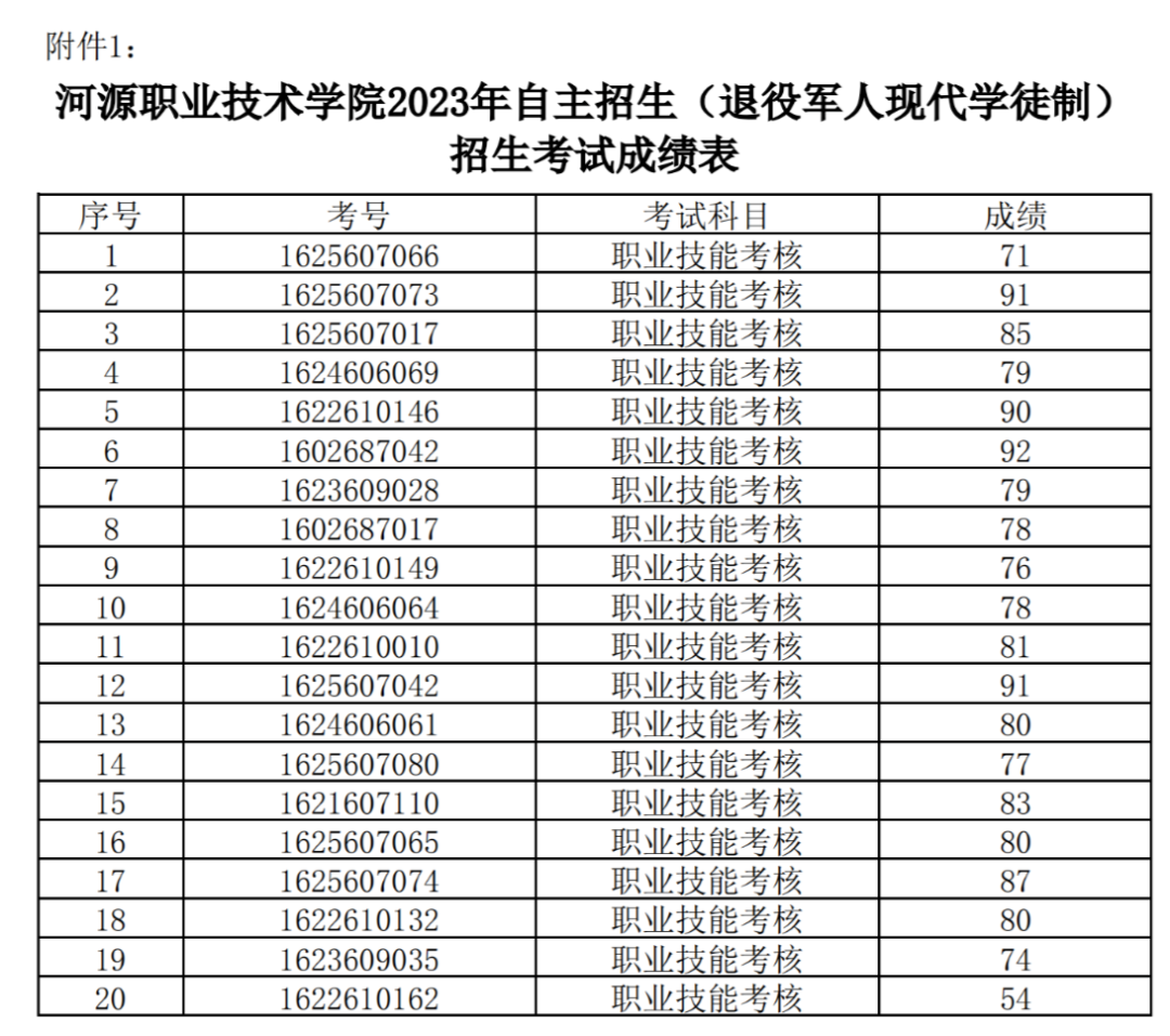 大撕兄统计了一下,智能控制技术专业入围人数<招生计划人数,而其他四个专业入围人数虽然多于招生人数,但是只是多出9人左右,竞争并不大,上深信机会还是很大的。 ![]() 河源职业技术学院 各位考生: 我校2023年自主招生(退役军人现代学徒制)考试评卷工作已全部完成,现将成绩予以公示(详见附件),公示期3日。如对本人当次考试成绩有异议,请于5月26日17:30前通过书面形式向我办提出复查成绩的申请(请下载附件填写),地址:河源市东环路河源职业技术学院教学楼A103招生办,电话(兼传真):0762-3800006。 河源职业技术学院招生办 2023年5月23日 ![]() ![]() 惠州工程职业学院