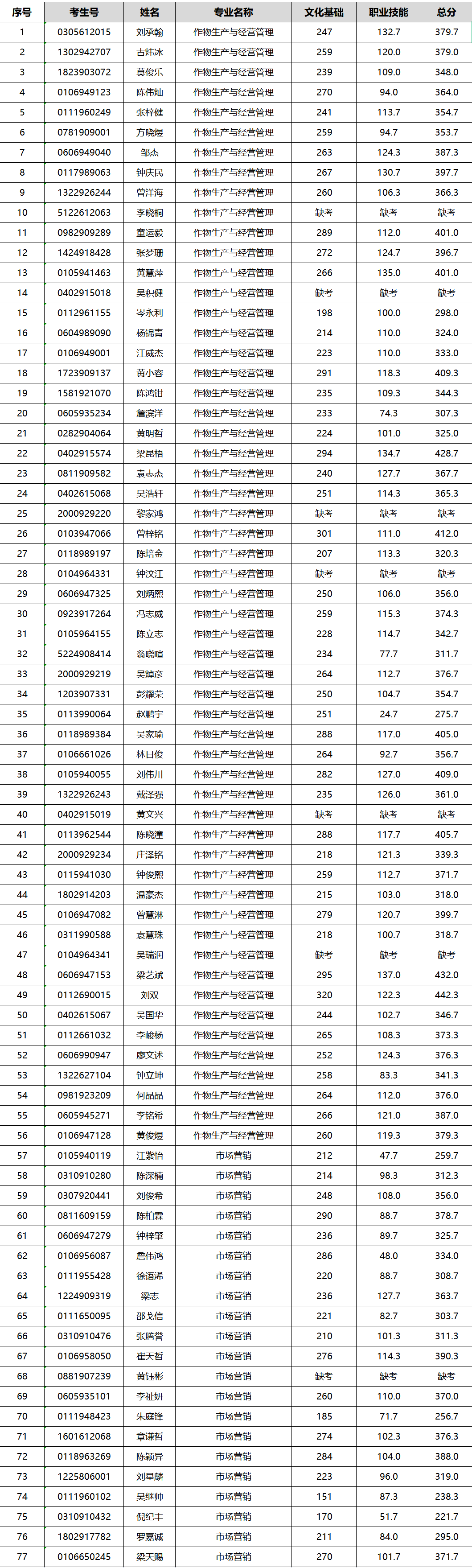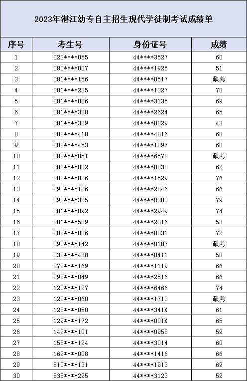 ![]() 广东南华工商职业学院 各位考生: 根据省教育厅相关文件要求和我校2023年普通现代学徒制试点招生录取工作安排,我校2023年普通现代学徒制考试工作已全部结束。现将参加考试考生成绩进行公示,公示期为2023年5月23-25日。