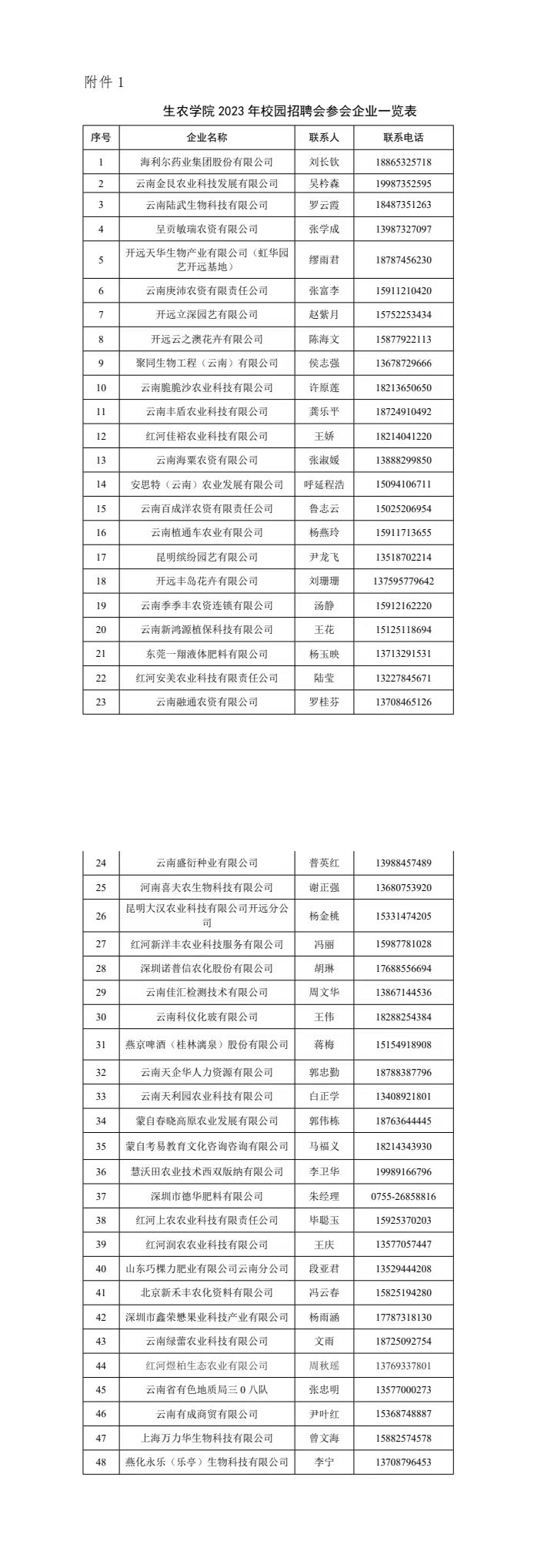 >【招聘会】生农学院2023年校园招聘会参会企业一览表