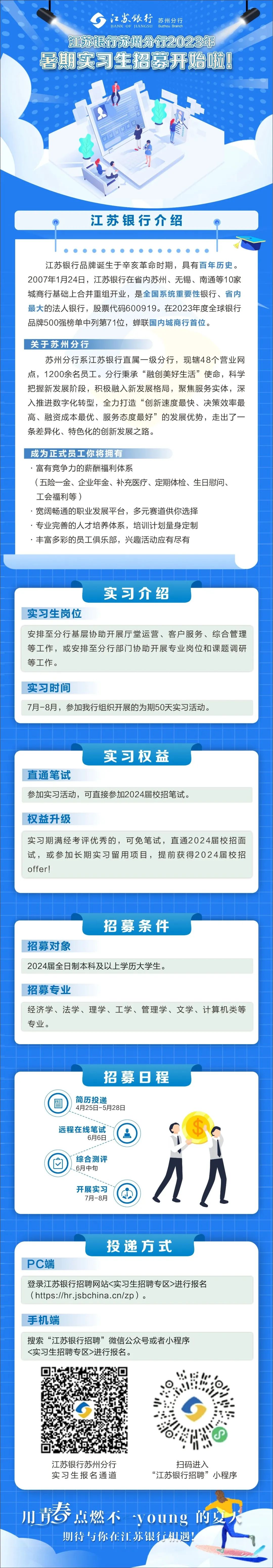 校园招聘丨江苏银行苏州分行2023年暑期实习生招募开始啦