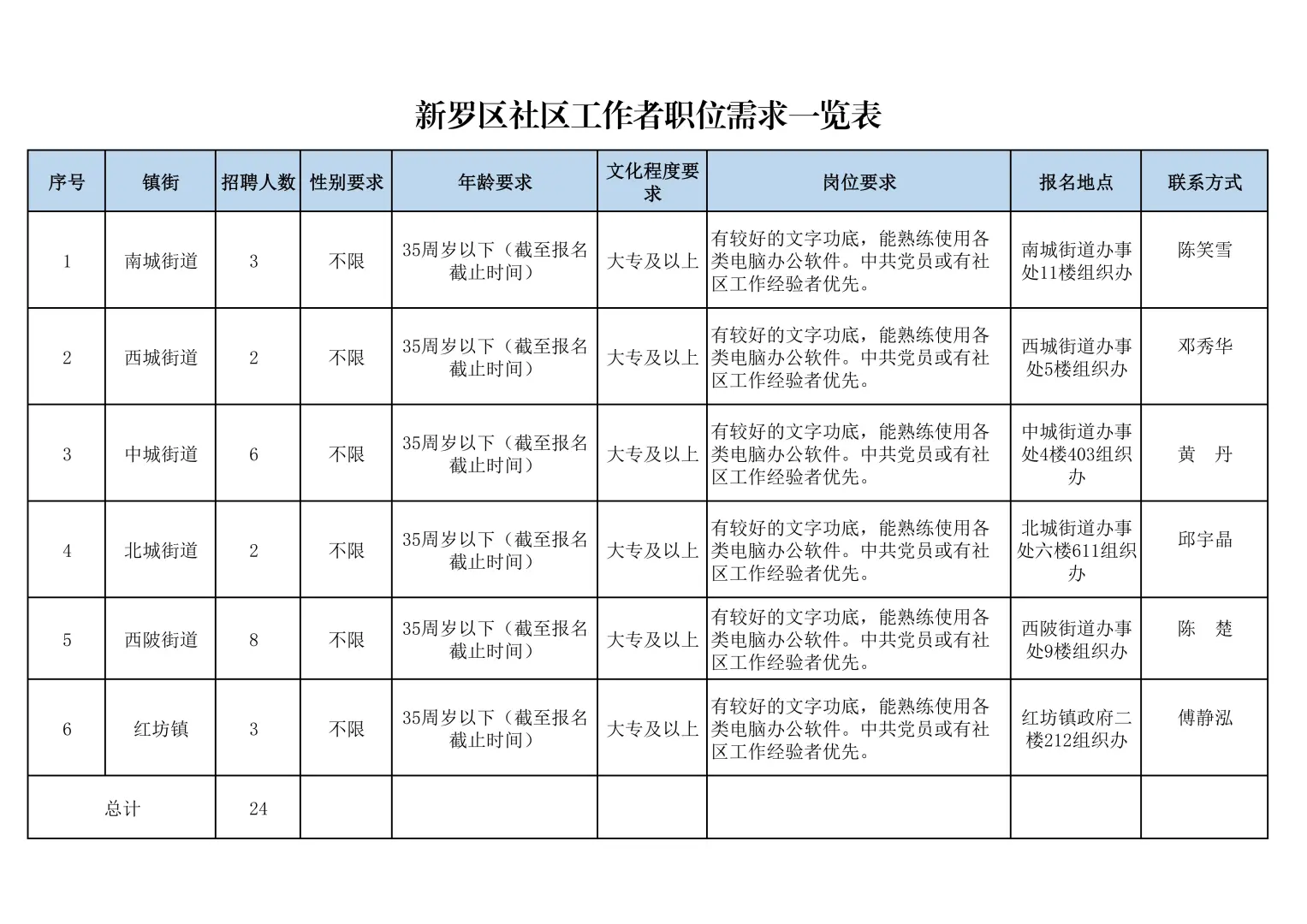 | 新罗区招聘社区专职工作者啦!24人 🎈新罗区招聘社区专职工作者啦🎈 想为社区发展贡献力量的小伙伴看过来呀!新罗区面向社会公开招聘社区专职工作者24名哦。 **招聘岗位**:南城街道3名、西城街道2名、中城街道6名、北城街道2名、西陂街道8名、红坊镇3名。 **报名条件**:政治素质好,热心社区工作,身体健康,品行端正,具有大专及以上学历,2025年应届毕业生应在2025年12月31日前取得相关学历,其他报考人员须在公告发布之日前取得相关学历,中共党员优先哦。当然,有一些特定情形的人员是不能参加的,具体可以看公告详情哈。 **招聘流程**:要经过报名、资格初审、笔试、面试、确定初步聘用人选、政审、体检、公示、聘用等九个阶段。报名时间是2025年10月22日至2025年11月4日,记得携带相关材料到报考岗位所在镇(街)报名哦。 **薪资待遇**:工资待遇按照《新罗区社区工作者职业体系建设管理办法(试行)》执行,相关镇(街)、社区还会配套发放绩效等福利待遇,并且社区工作者将作为社区“两委”干部储备人才呢。 机会难得,快来报名吧,一起为社区服务和社区治理能力提升添砖加瓦呀!💪 #新罗区招聘 #社区工作者招聘 #社区专职工作者 #招聘公告 #社区工作者考试 #社工 #社工考试 #龙岩社工 |