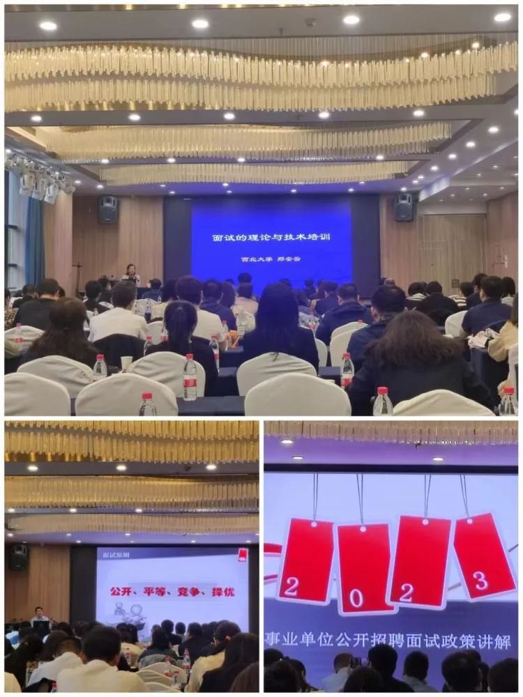 市人社局党组成员、副局长赵伟参加培训并作开班动员讲话。此次培训邀请了西北大学、西安文理学院多名教授讲授面试基本原理、测评要素、测试方式和案例分析等内容。市人社局事业处杨乾才处长就事业单位公开招聘面试政策、面试考官工作职责、操作程序及纪律要求进行讲解。培训班还组织安排了现场模拟面试实践活动。