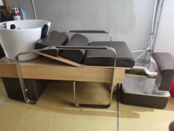 【出售】美发低价出售洗头床,展柜,吧台,微信同号18735756783。