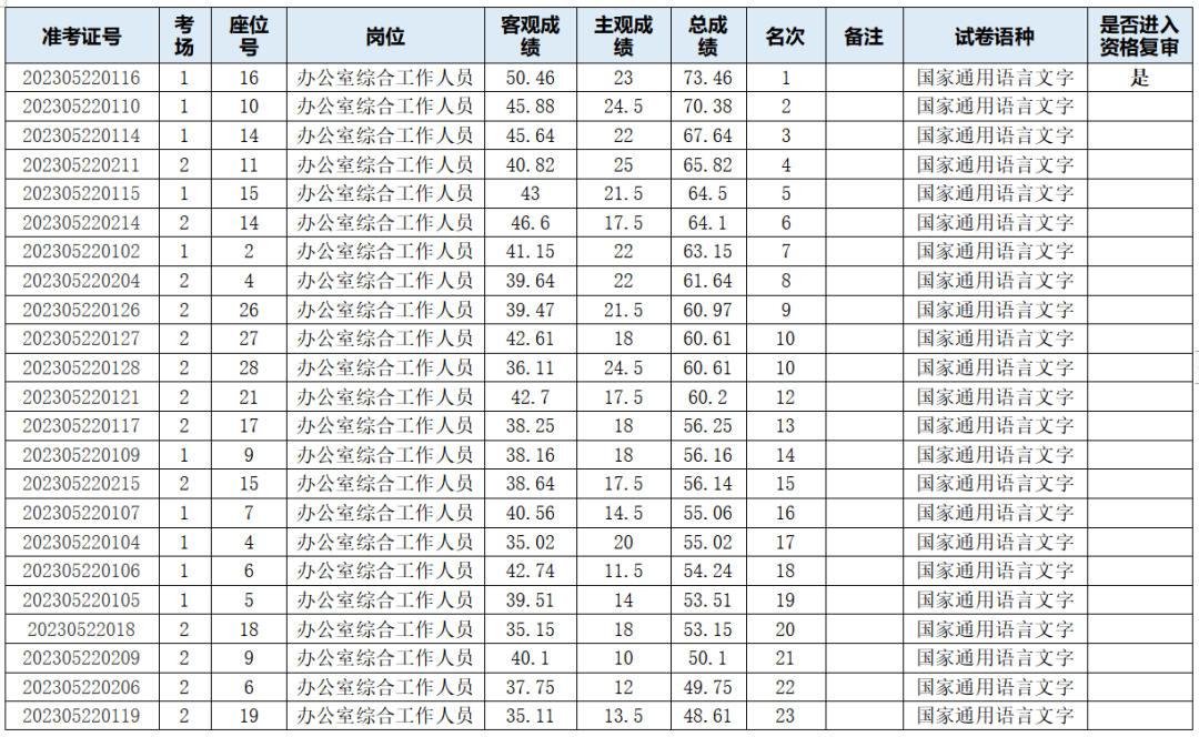 (三)因资格复审不合格、规定时间内不参加资格复审等情况,按照笔试总成绩从高到低的顺序依次等额递补。由招考工作人员电话通知递补人员,递补人员于6月1日资格复审,递补复审只进行1天,请笔试总成绩相近的考生提前准备好复审资料,关注补录相关信息。