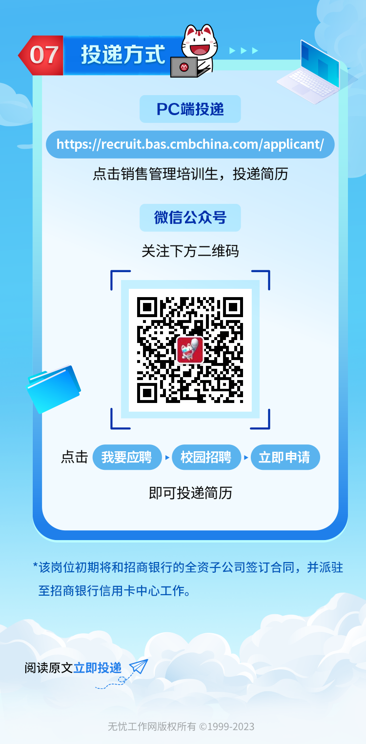 招聘 | 招商银行信用卡中心2023销售管理培训生招聘