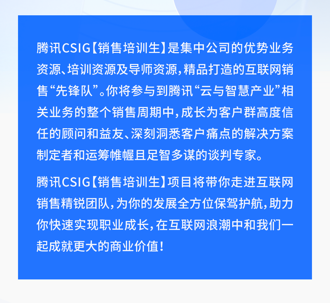 【招聘信息】腾讯CSIG 2023实习生招聘 销售培训生招募火热进行中