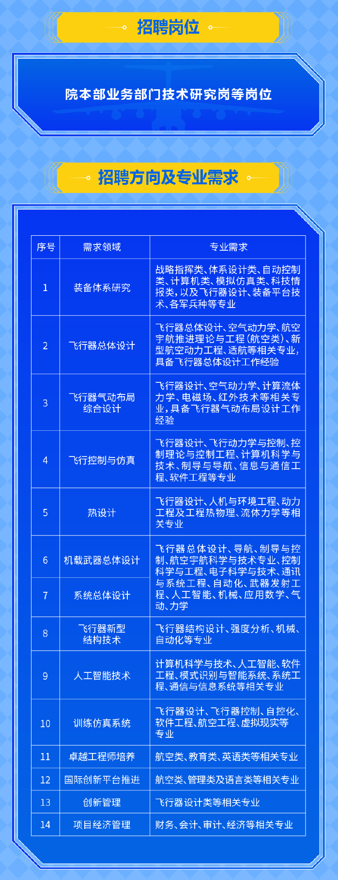 【校园招聘】中国航空研究院/航空工业智航院人才公开招聘