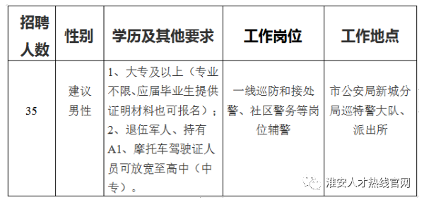 因工作需要,根据《江苏省公安机关警务辅助人员管理条例》有关规定,淮安市公安局新城分局计划面向社会公开招聘35名警务辅助人员,现将有关事项公告如下。