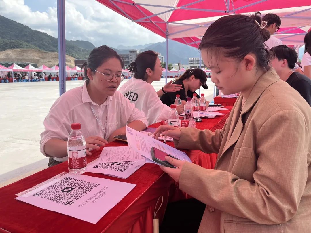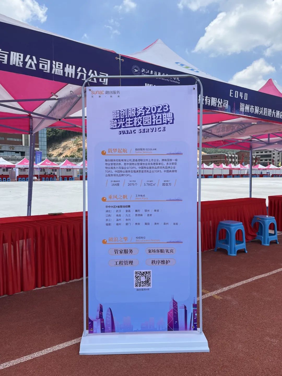 在骄阳似火的正午,同学们怀揣着对未来职业的憧憬,纷纷寻找着自己心仪的岗位。温州公司综合管理部人事经理余婷姐,向同学们介绍融创服务,以及什么是物业?物业岗位的职业发展等等,解答了同学们的许多疑问。