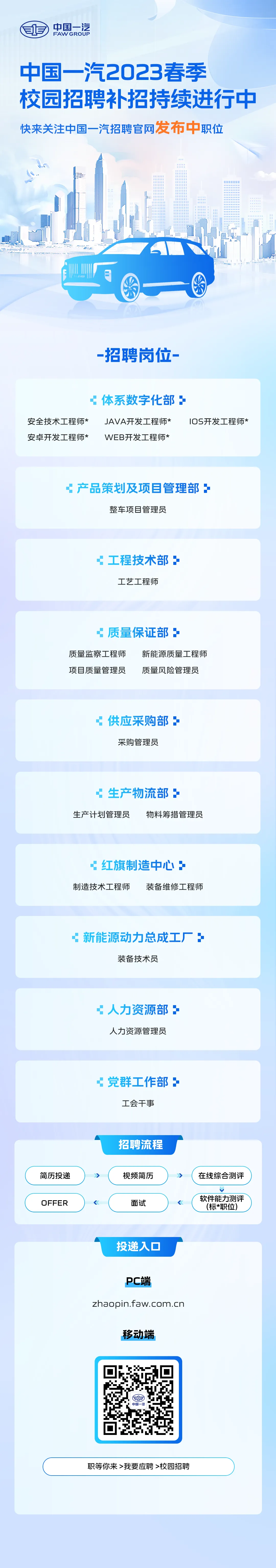 >【校园招聘】中国一汽2023春季校园招聘补招