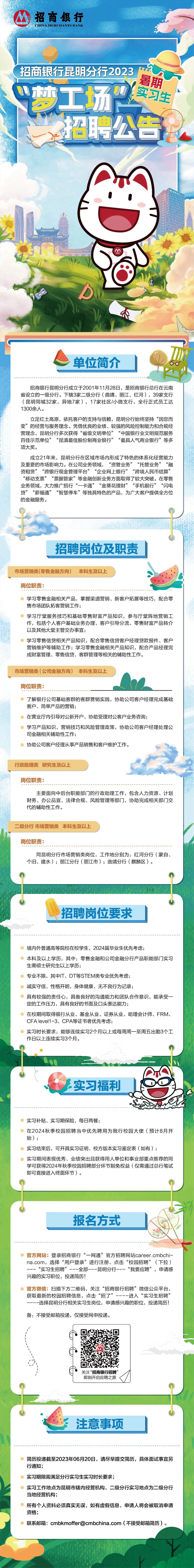 【校园招聘】招商银行昆明分行2023年实习生招聘