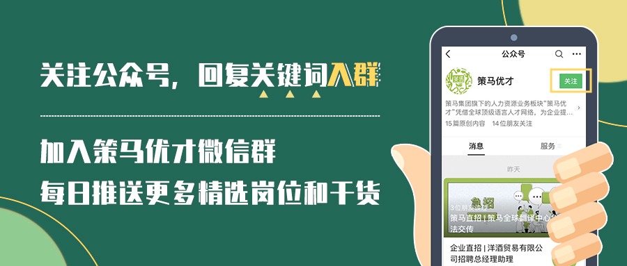 声明:本岗位信息来源于招聘方官方渠道或各权威招聘平台,策马优才不对上述信息真实性及招聘过程负责。有兴趣者请点击“阅读原文”查看原始信息。