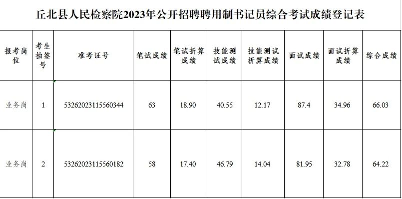 >丘北县人民检察院2023年公开招聘聘用制书记员综合考试成绩公告