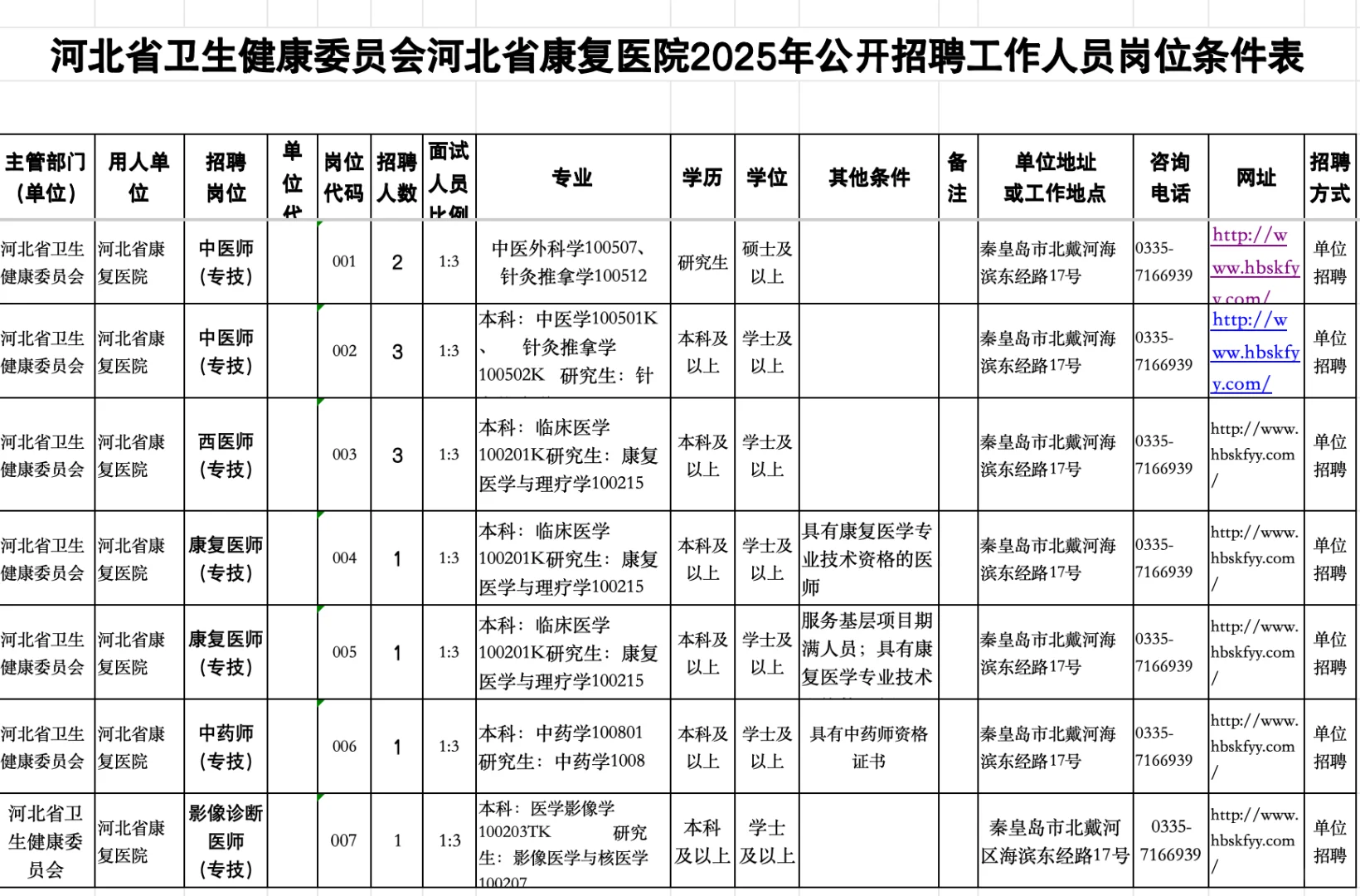 25年河北省卫健委康复医院公开招聘工作人员