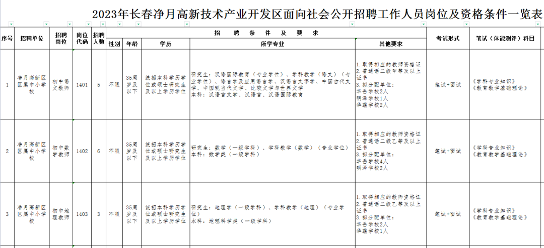 净月区发布2023年长春净月高新技术产业开发区面向社会公开招聘工作人员岗位及资格条件一览表!
