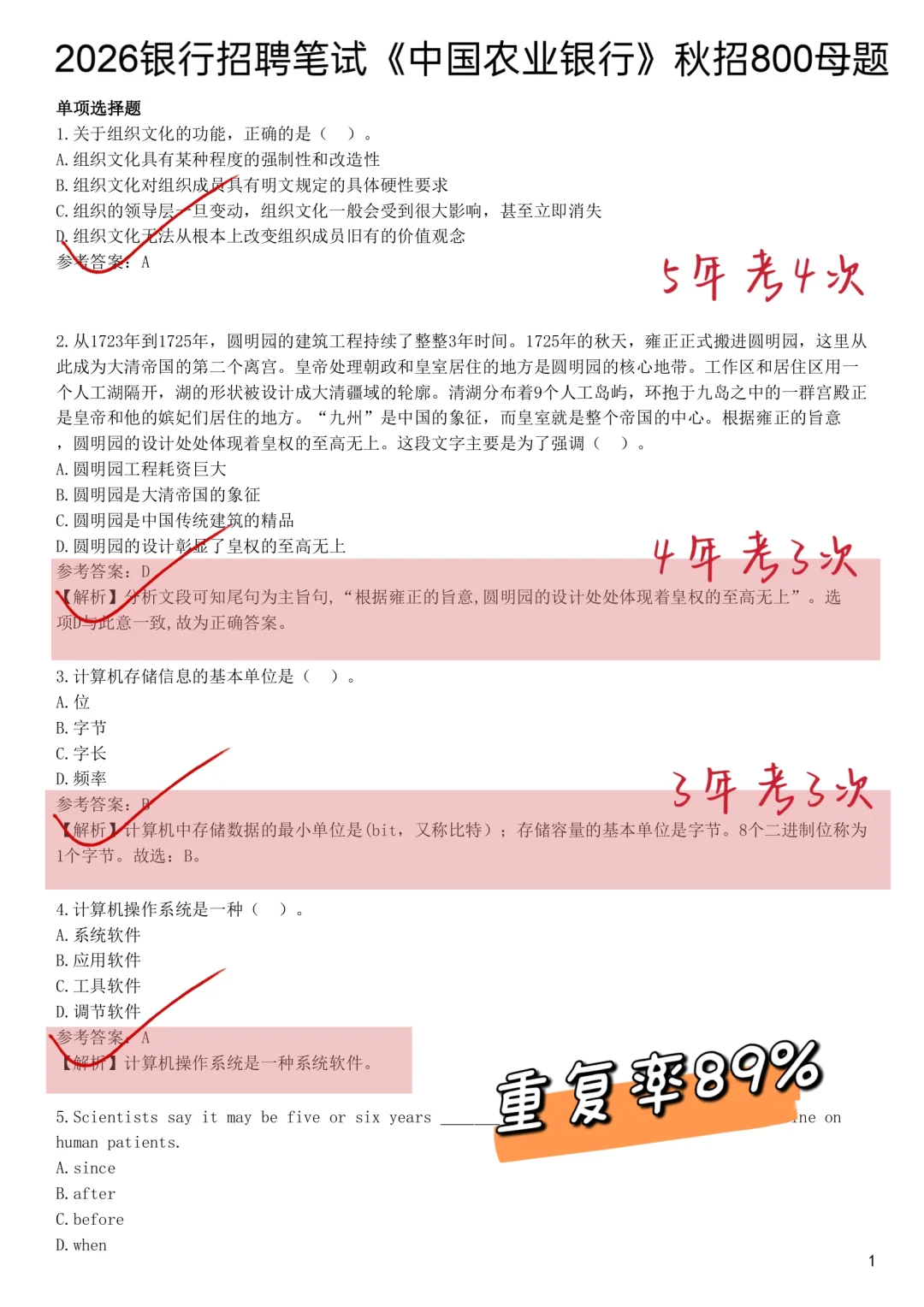 >11.1农业银行笔试,就这800题,3天背完足矣