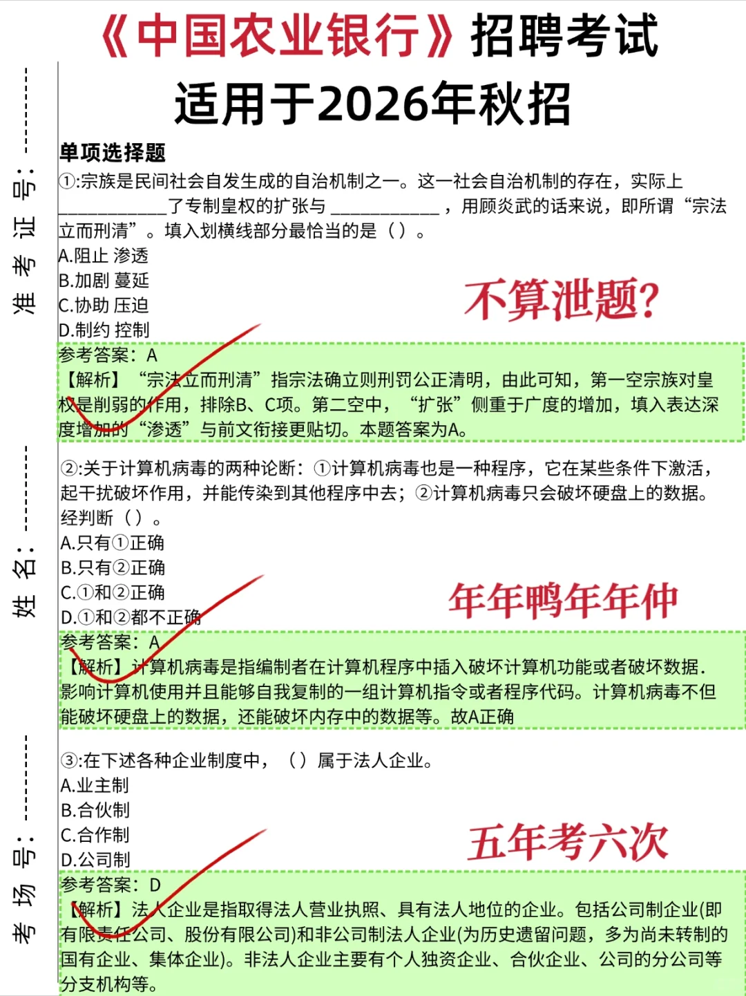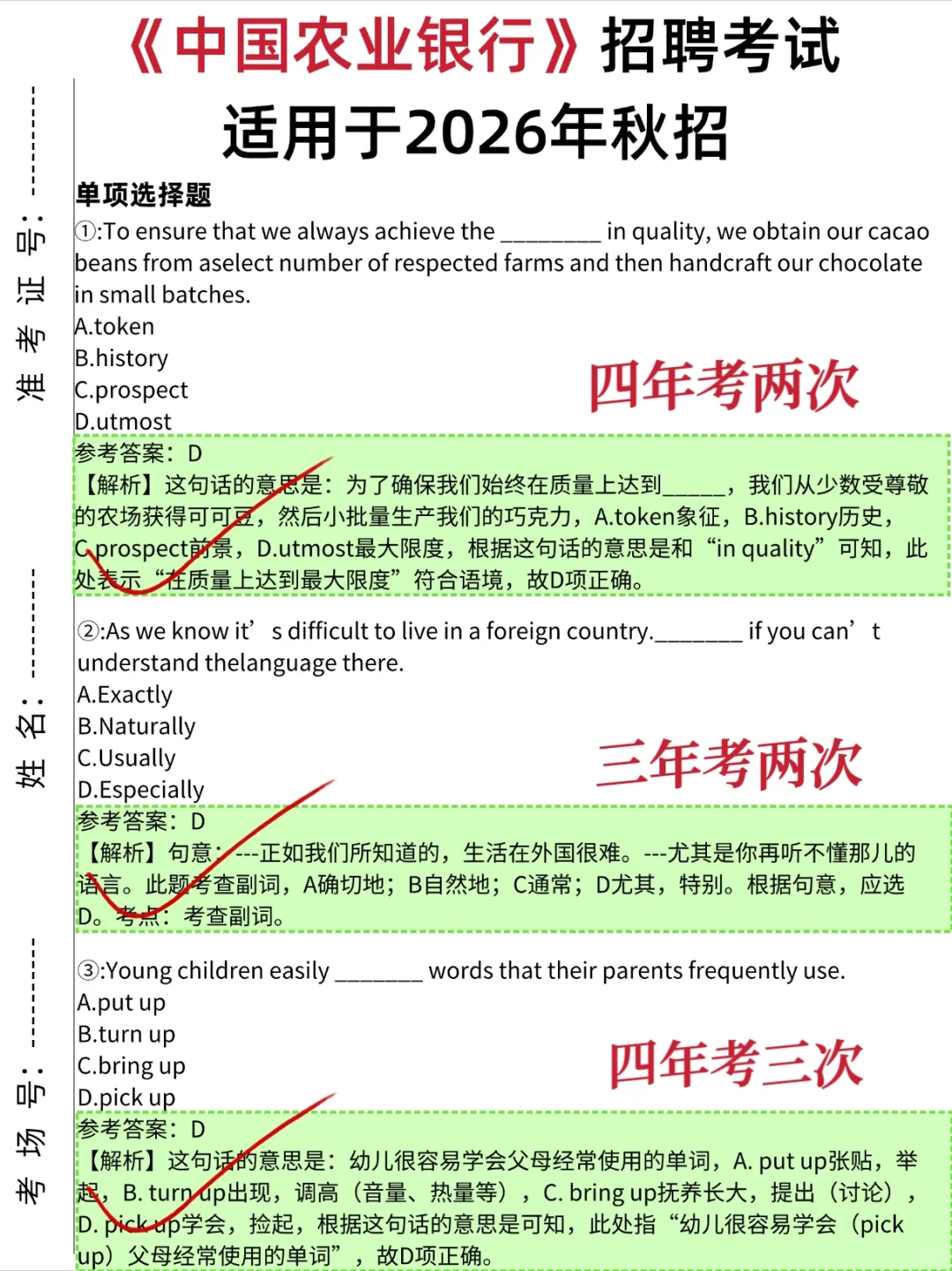 别裸考!农业银行秋招,反正就这几张卷子