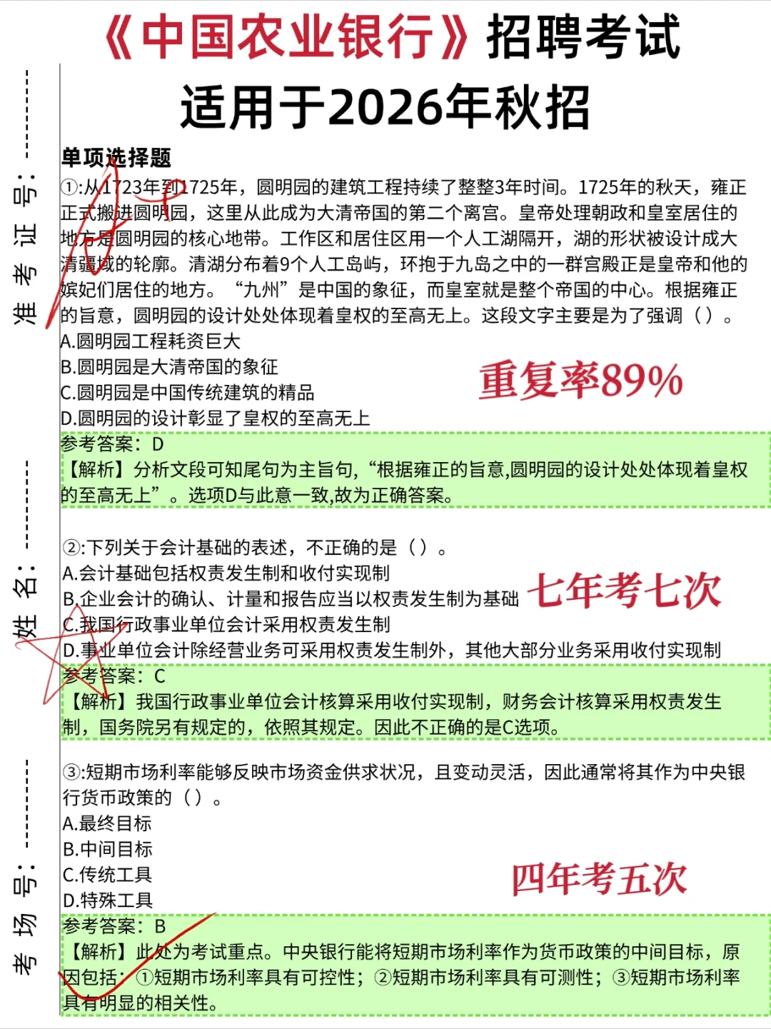 11.1农行笔试,就这9页,7天背完足矣