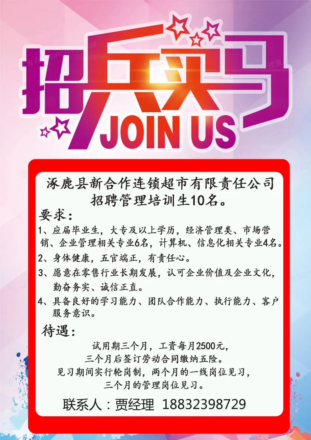>【新合作超市】招聘10名管理培训生!加入我们,给自己一个展现才华的舞台.