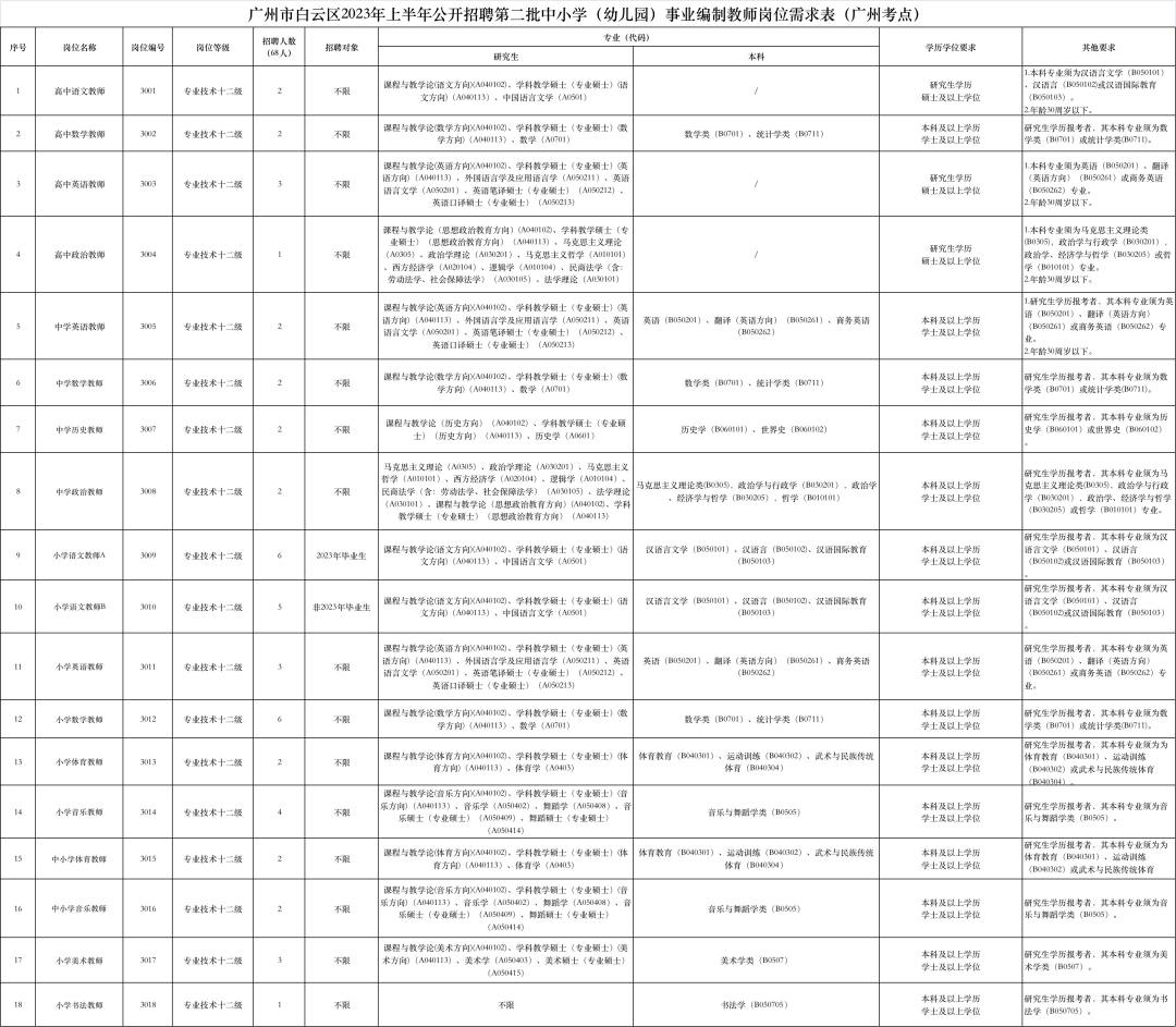 3.广州市白云区2023年上半年第二批公开招聘中小学(幼儿园)事业编制教师岗位需求表(广州考点).xlsx