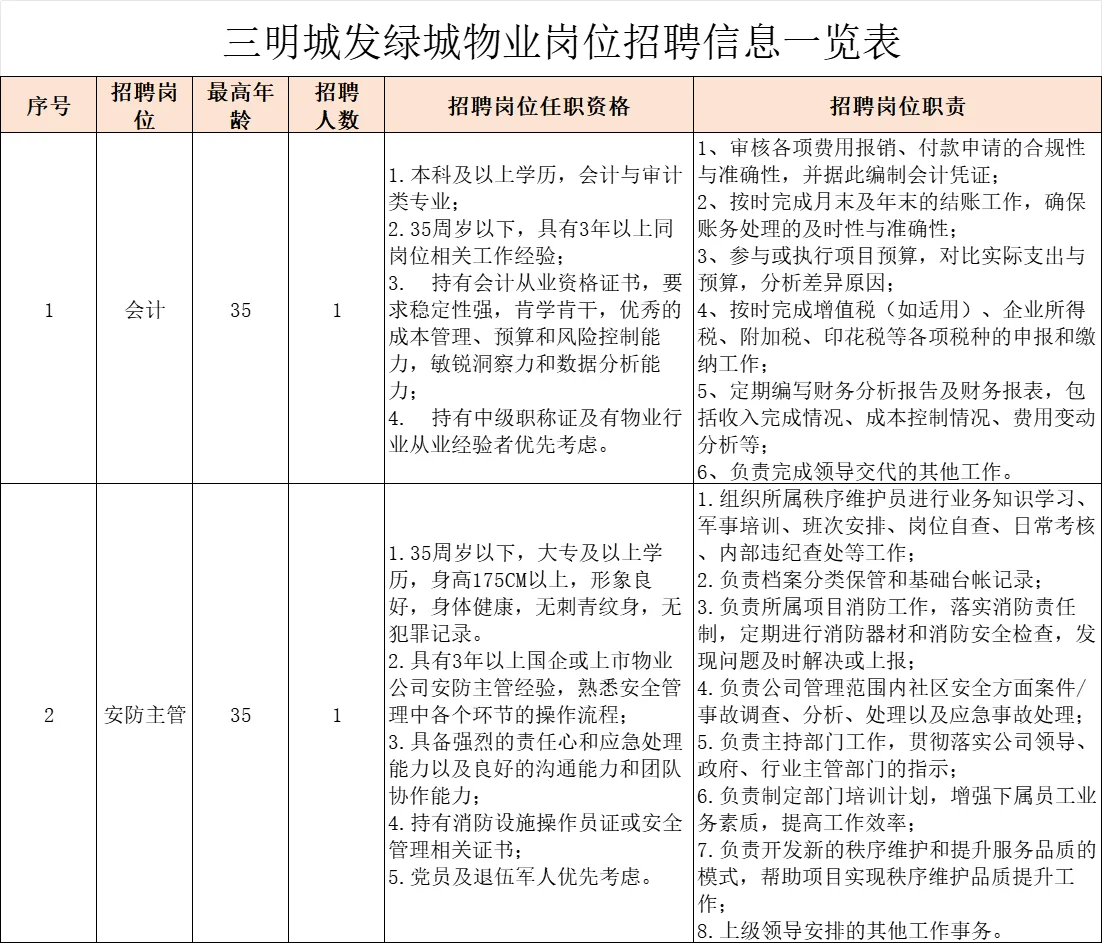 ✅招聘单位:三明城发绿城物业服务有限公司于2022年11月由城服集团、绿城集团、东南集团共同出资成立的联营公司,是一家集前期介入、前期物业服务、全委物业服务、案场专项服务、实务指导服务及其他相关服务等为一体的大型综合性物业服务企业。