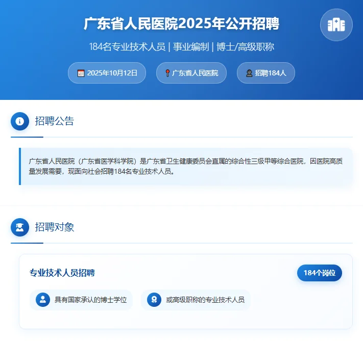 广东省人民医院(广东省医学科学院)面向社会公开招聘184名专业技术人员