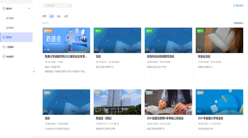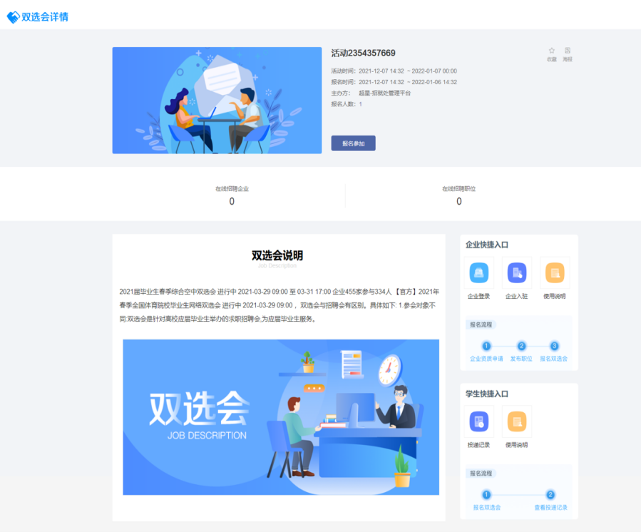 ● 点击单个双选会,可进入双选会查看页面。