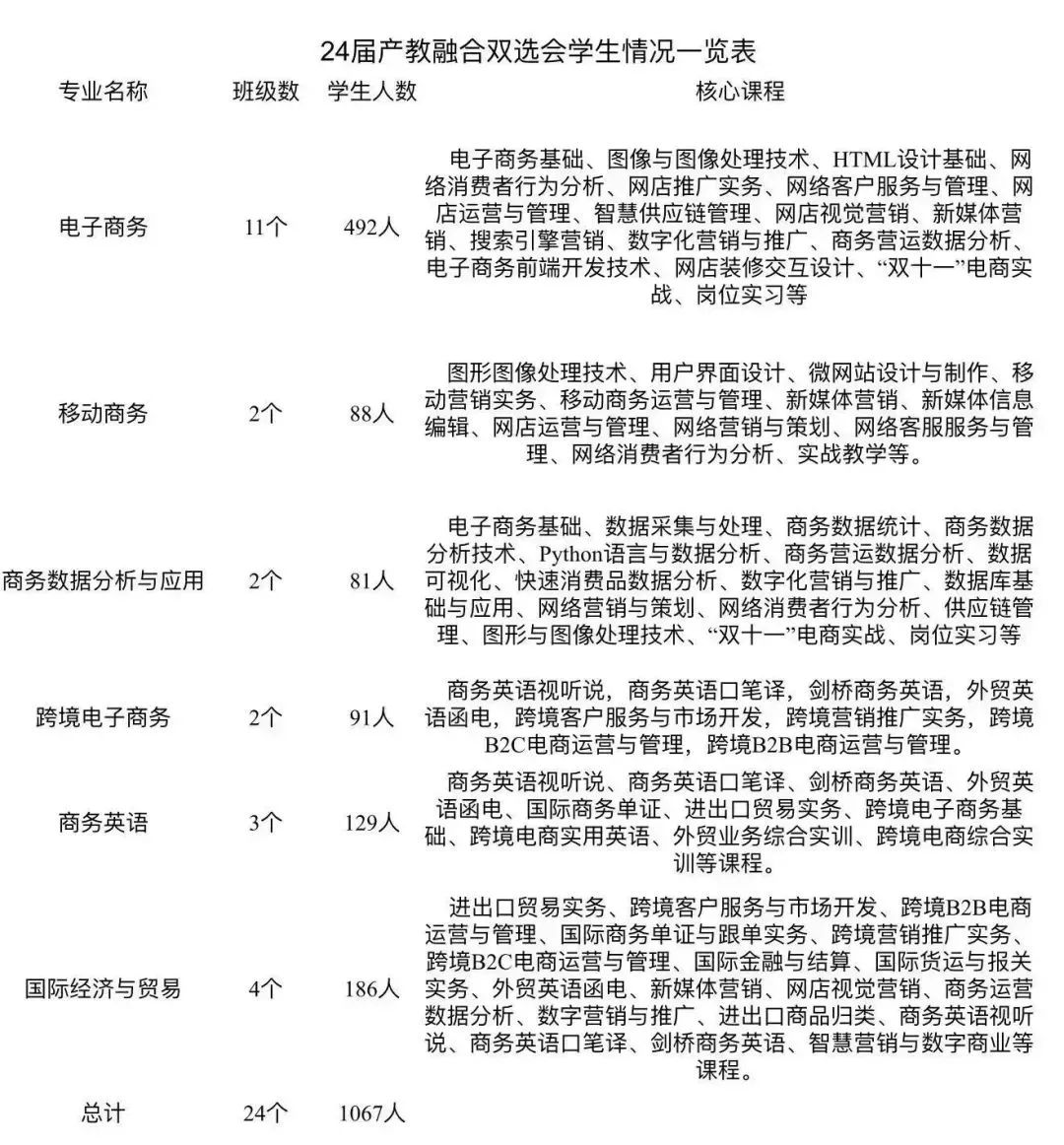 为切实贯彻落实党中央、国务院关于高校毕业生产教融合及就业工作的决策部署,提升产教融合学生职业技能素养,推进毕业生高质量就业,进一步做好就业创业指导和服务工作,电子商务学院拟于近期开展“千校万岗,领航未来”电子商务学院24届学生产教融合双选会暨23届毕业生招聘会。诚邀各用人单位参会,具体事项通知如下: