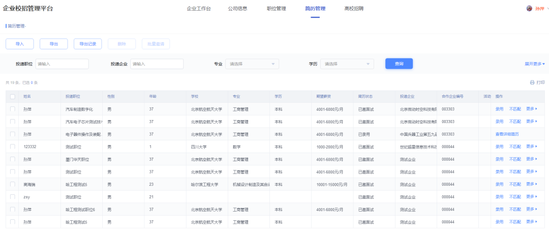 3、简历管理(此功能双选会后启用):