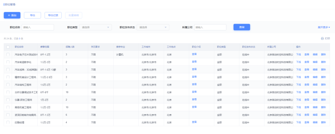 企业可在职位管理中查看所有发布的职位信息,同时可进行职位管理,如编辑职位信息、下架职位、删除职位等。