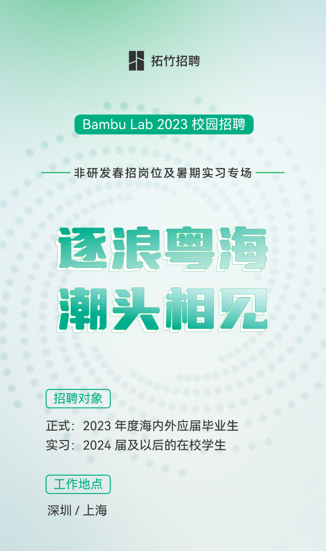本文转自:拓竹2023校园招聘~多岗位招聘 福利优渥