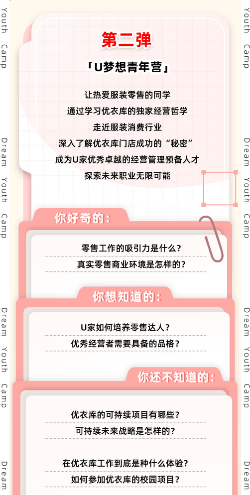当前位置:首页>东北>校园招聘 | 优衣库 U梦想青年营招募启动啦!