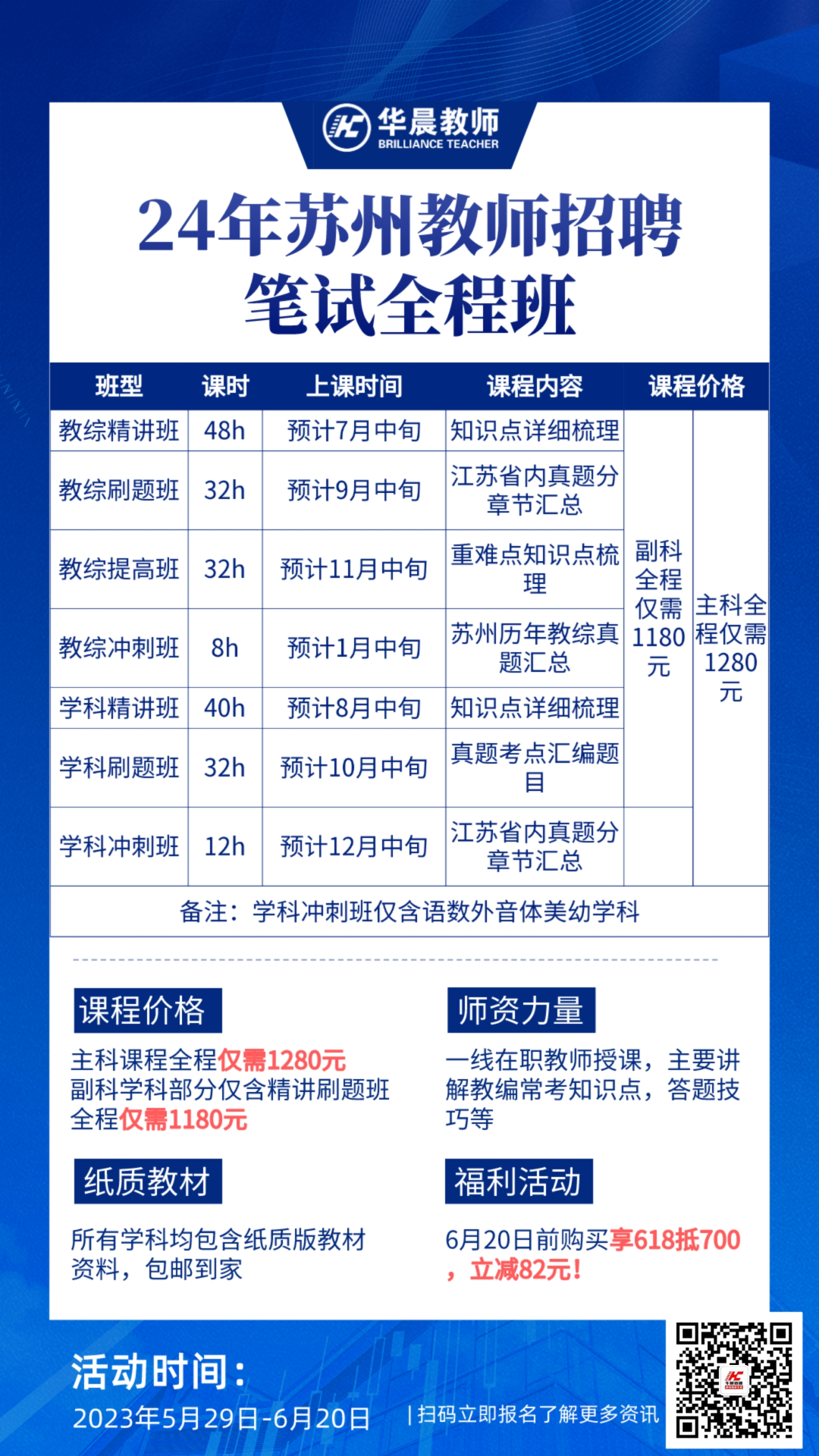24苏州笔试全程班(语数外、音体美幼、物化生、政史地、信息、科学、心理健康)各科均开新课